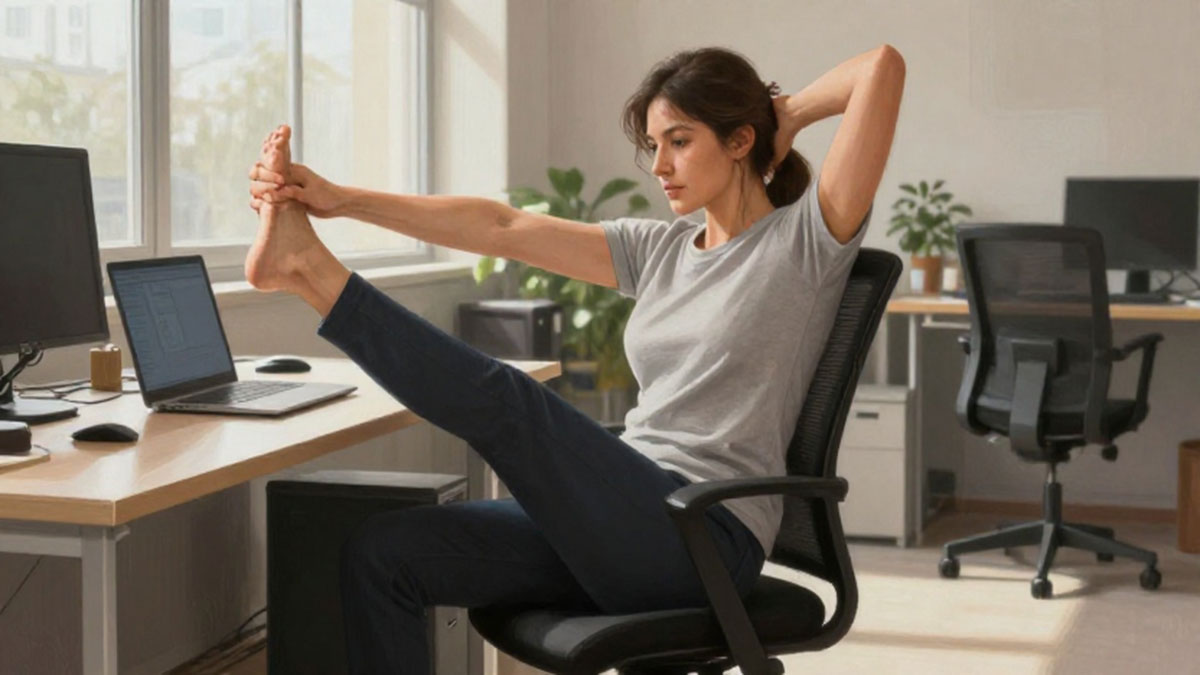 Melakukan peregangan sederhana setiap jam dapat membantu mengurangi ketegangan otot, meningkatkan sirkulasi darah, dan mencegah rasa pegal. Contoh peregangan termasuk: